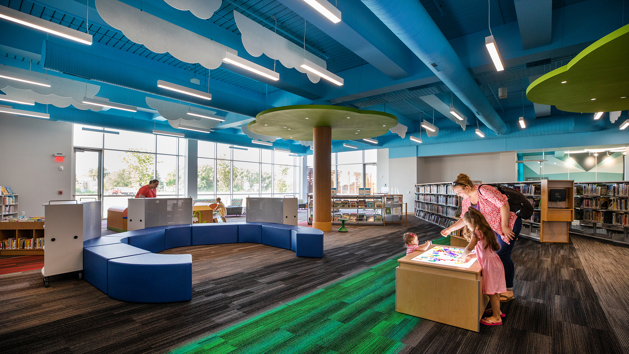 The new 2-story, 95,000 square foot Advanced Learning Library is now a hub in the City of Wichita for all to learn, gather, and build community. In addition to housing reading, audio-visual, and media resources, it also offers a bookstore, seven collaboration rooms, seven meeting rooms, and the Children’s STEAM Learning Garden, an outdoor children’s area with musical instruments and collaborative games. No matter their age, the Advanced Learning Library has something for everyone in Wichita.