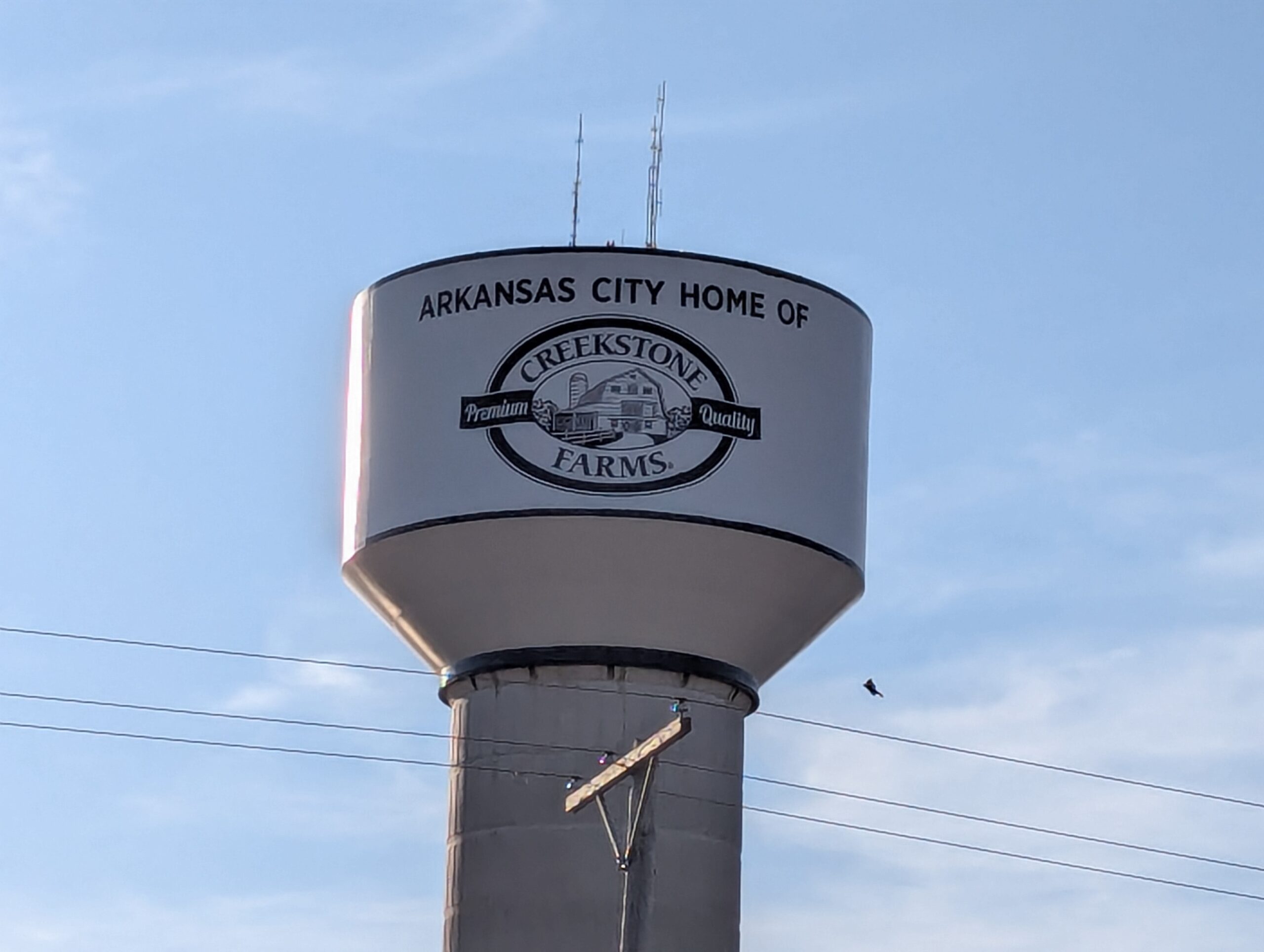 The City of Arkansas City has an existing 500,000-gallon composite water tower called Goff Tower. It is located in the City’s North Pressure Zone and is directly adjacent to the City’s top water user, Creekstone Farms.