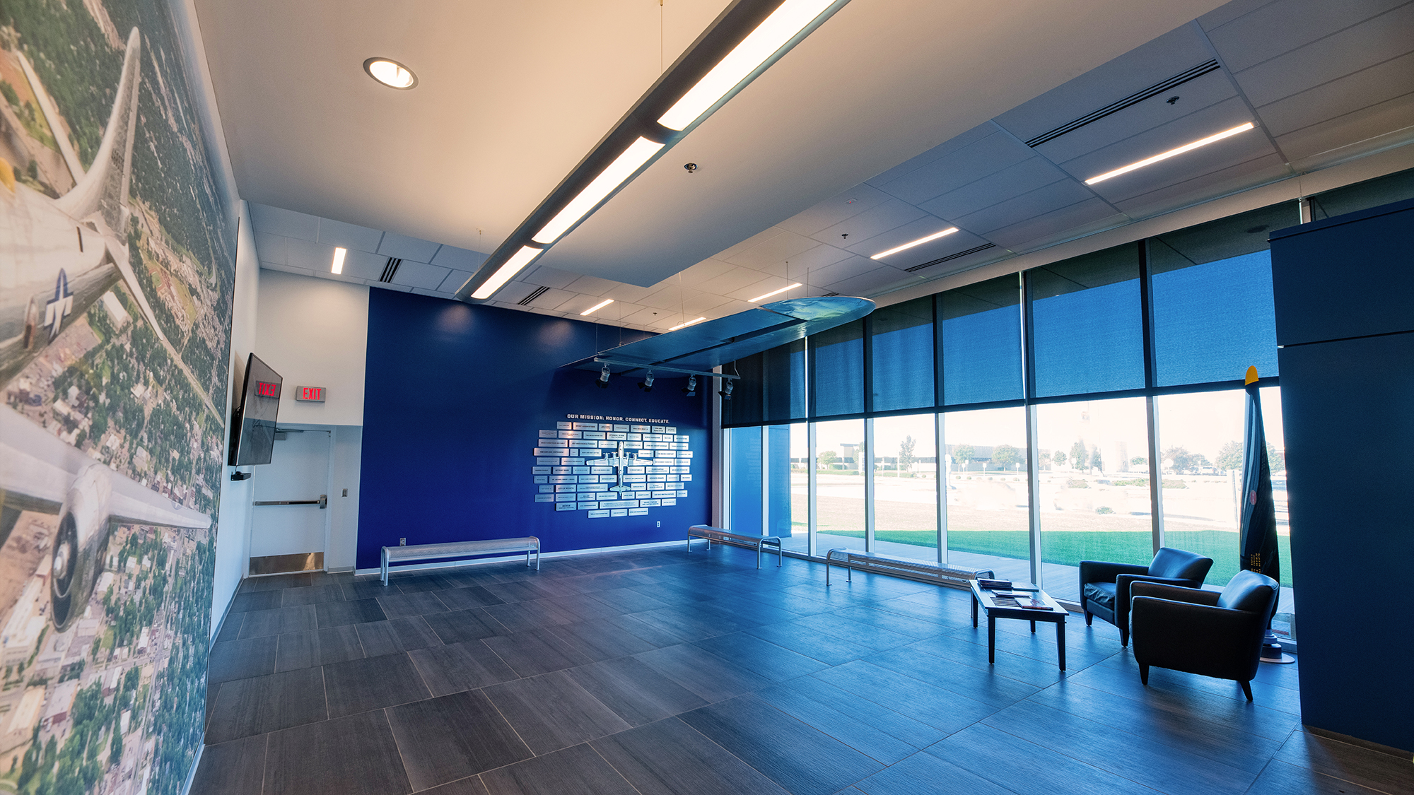 Located at the Eisenhower National Airport, the 32,000 SF, $6.5 million facility includes 24,000 SF of hangar space and a working maintenance facility, where the public is invited to watch crews maintain Doc with hands-on learning experiences. The upper mezzanine houses the science, technology, engineering, and mathematics (STEM) education and history center.