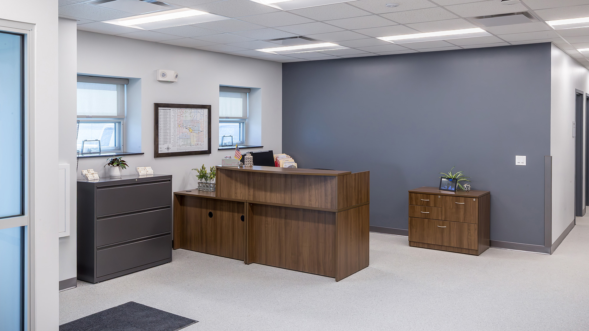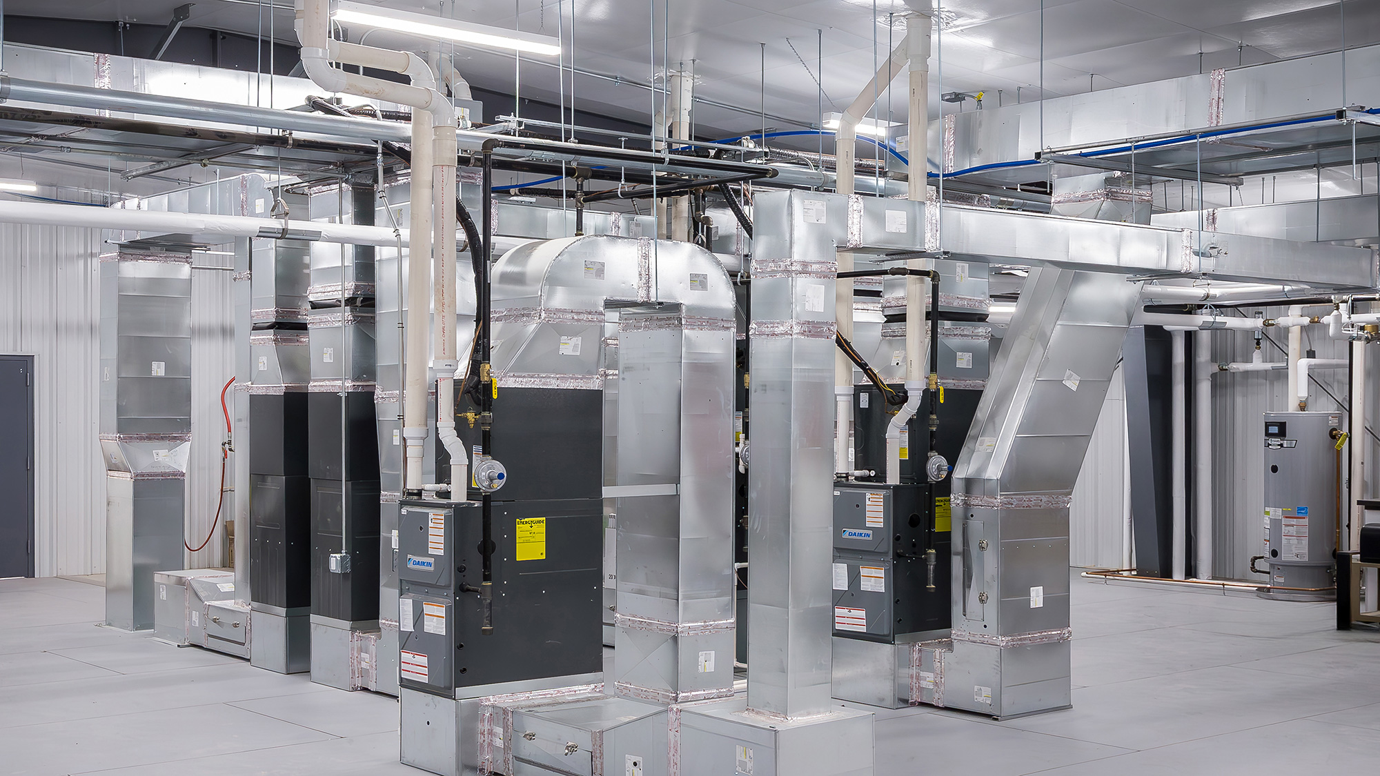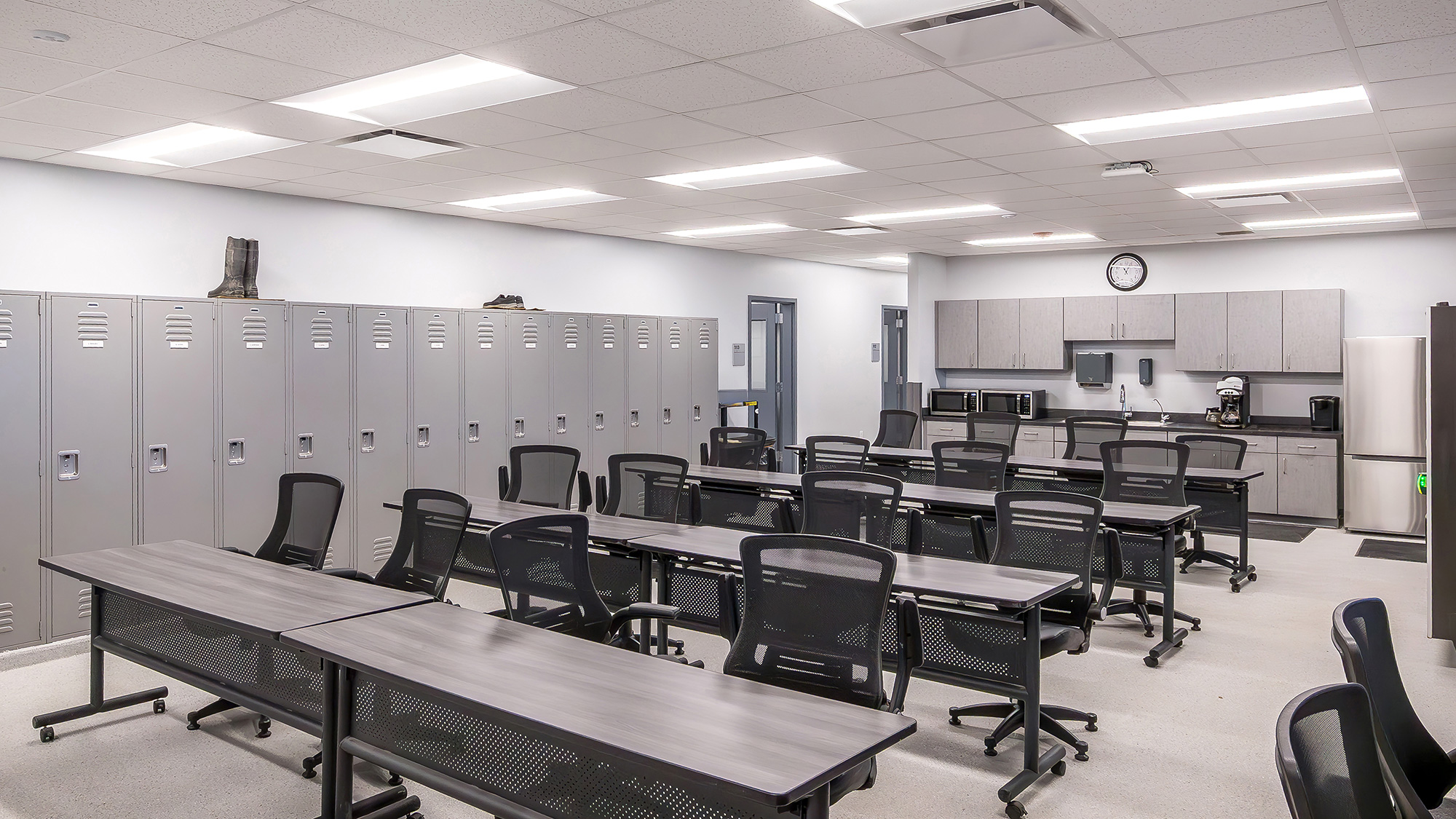 The structural engineering team planned a 24,000 SF building that consisted of office space, vehicle maintenance garage areas, a wash bay, and safe herbicide storage. On the outer grounds of the new public works complex they created a 2,000 SF warehouse, a cold storage building, a salt bunker, and a fuel island. A facility like this requires a variety of mechanical systems working in concert, presenting a unique challenge. The new building included systems like water, waste, natural gas and ventilation. Because the building is supplied by well water, a reverse osmosis system was included for drinking water. They also needed a sand/oil separator system to capture dirt and debris from the vehicle maintenance portion of the building to keep those substances out of the wastewater system. The electrical team designed exterior and interior lighting with all LED lights.