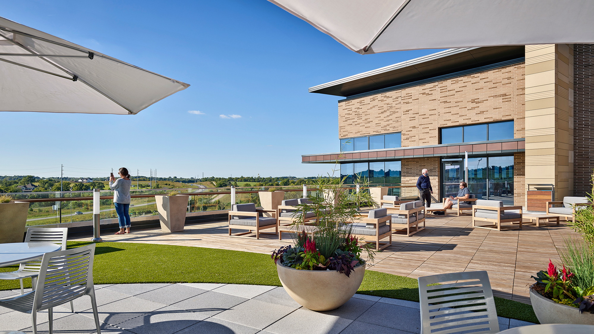 A collaborative spirit was a part of the LMH Health West Campus project from the start. PEC offered the convenience and cost savings of a holistic engineering service for the design-build team. With the contractors on board, the team had real-time pricing during the design process to aid decision making, eliminate the need for redesign efforts, and keep the project on budget. The design-build team’s integrated approach cut months from the overall schedule. The primary focus of the new 3-story, state-of-the-art outpatient center is orthopedic and sports medicine with surgical capabilities and a full outpatient therapy area. It also consolidates many health services into one location with an imaging center, large primary care clinic, physical therapy, urgent care, women’s health center, and specialty physician offices. Patients, staff, and visitors are greeted with grand finishes and lighting design that make this facility more like a 5-star hotel than a medical office building. Site amenities for the 20-acre campus include a therapy garden, and a walking trail with exercise and yoga station pause points that connect to existing City trails. The first-class roof top garden terrace contains a stage area, outdoor seating, and infrastructure to host diverse functions from black-tie galas to a casual outdoor luncheon.