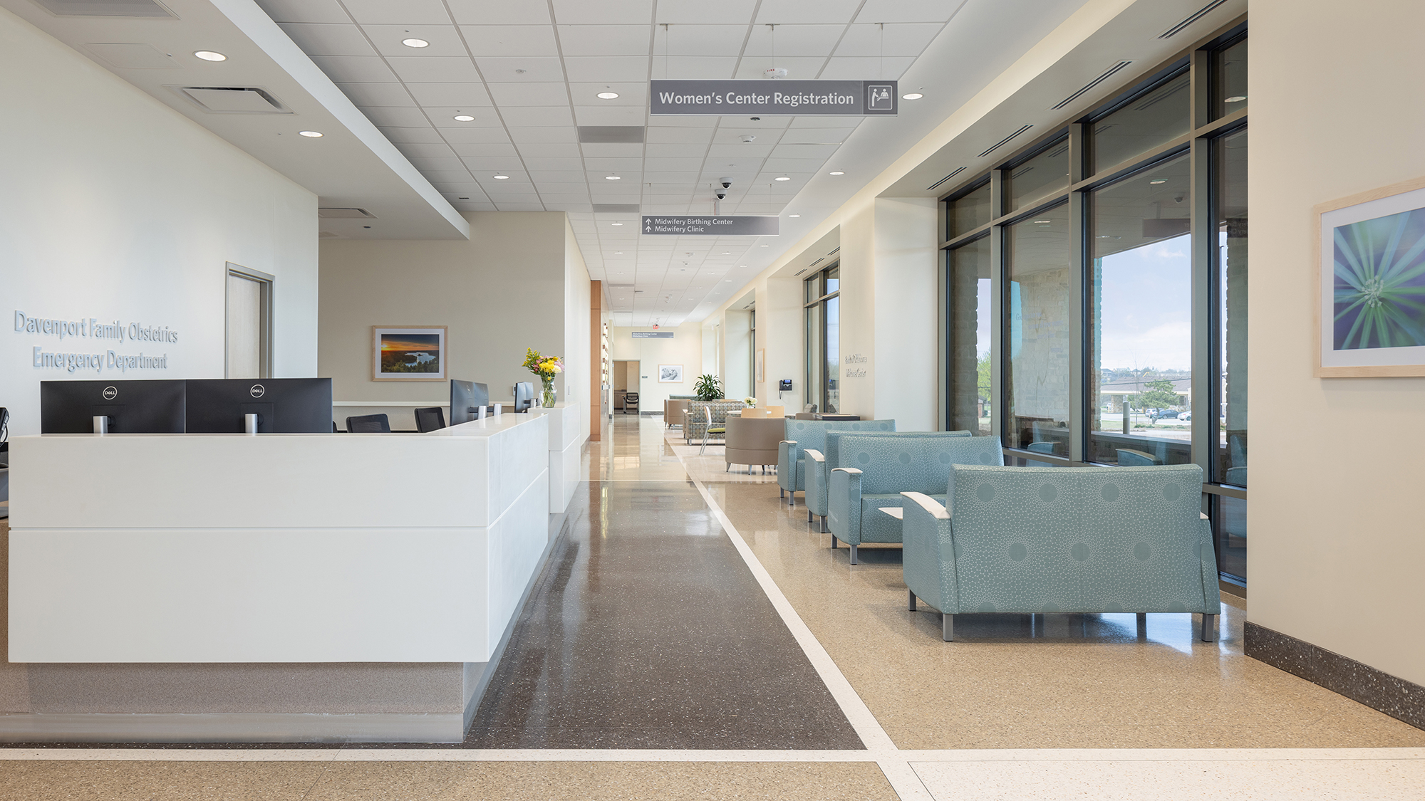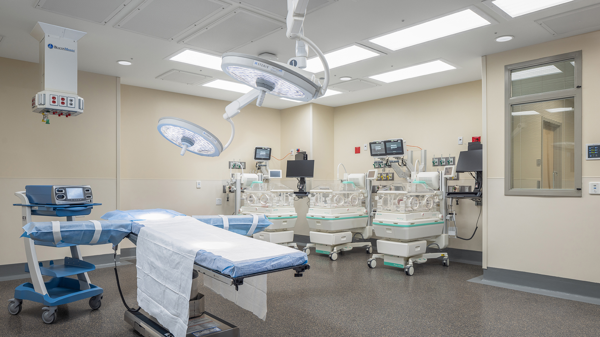 The 175,000 SF center features 15 large delivery rooms, 7 antepartum rooms, 47 postpartum rooms, and 3 Cesarean section rooms with pre- and post- operative recovery rooms. In addition, it has support clinics (postpartum, outpatient, lactation), physical therapy rooms, and is connected to the neonatal ICU. The new obstetrics emergency room can receive patients 24/7 and is the first ER of its kind in Oklahoma City.