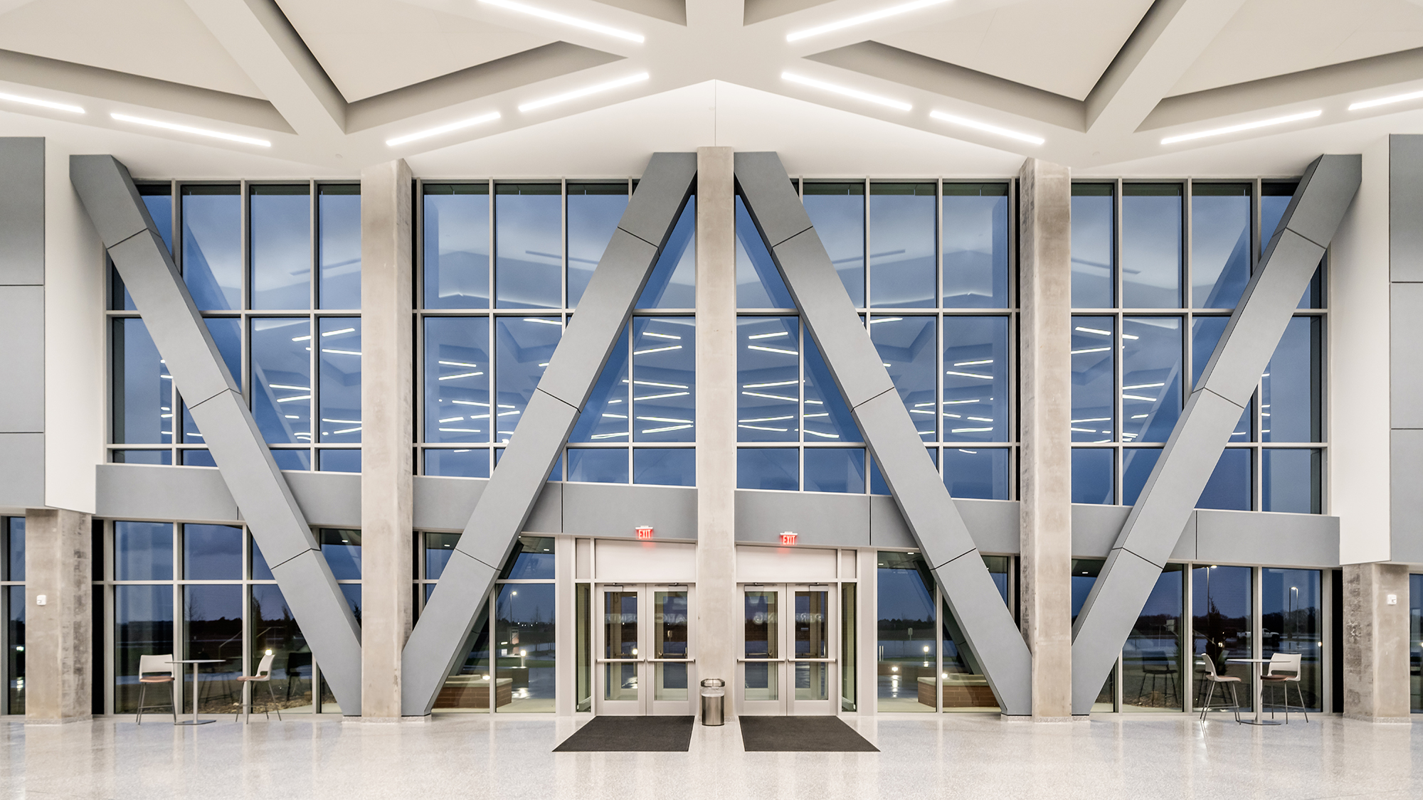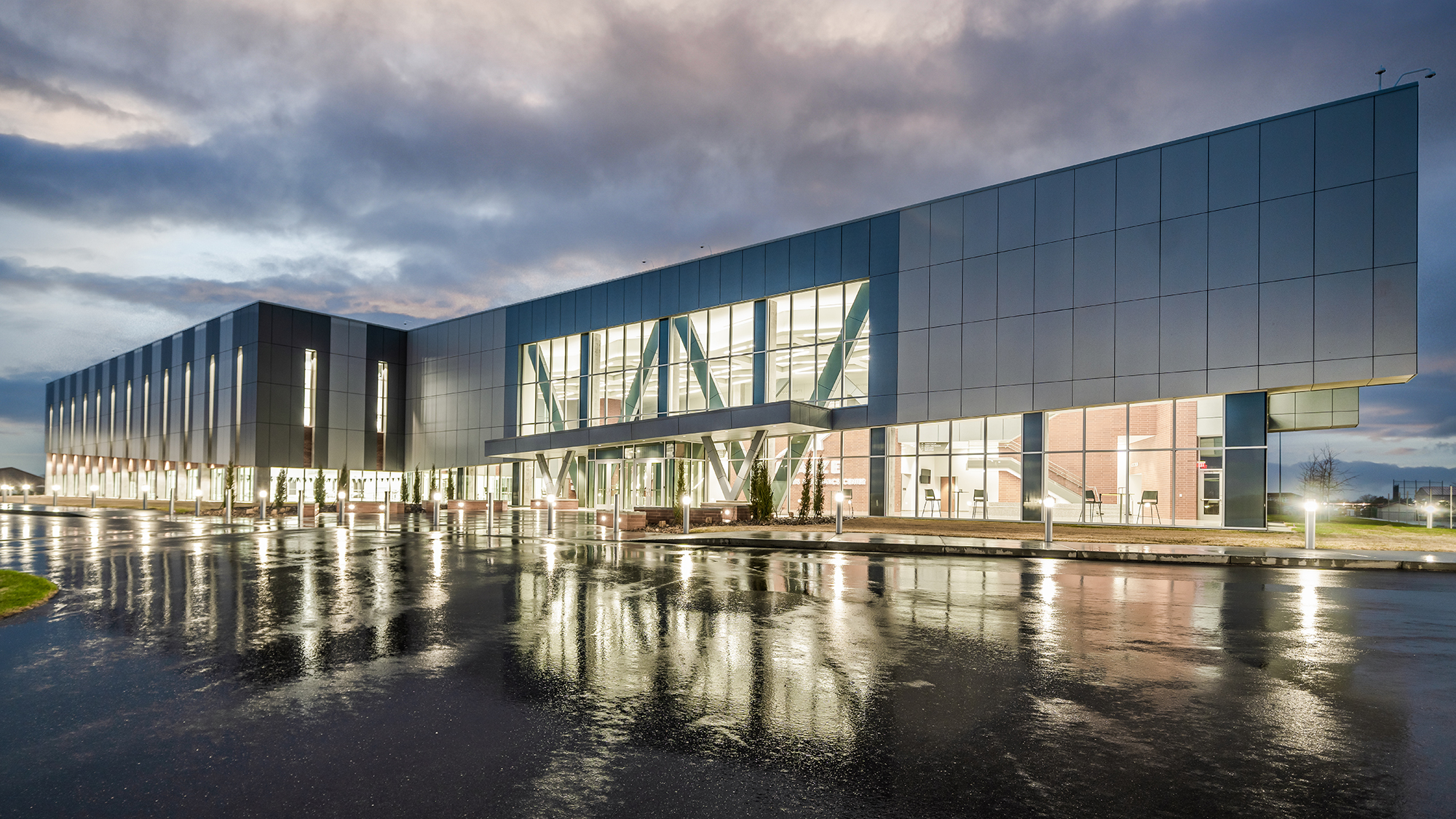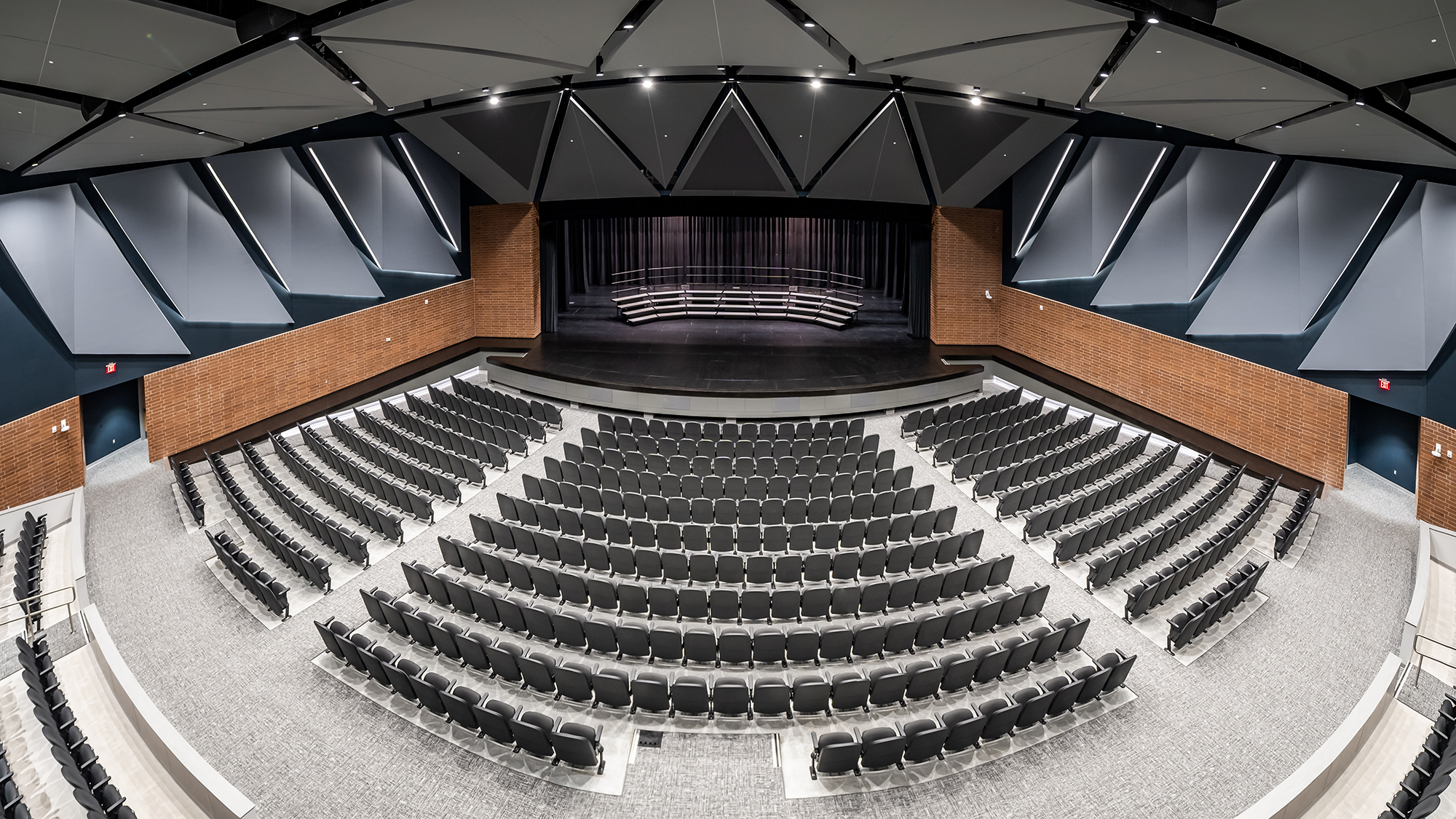 The mixed-use facility consists of a 2-story lobby entry that leads into a 1,200-seat auditorium and the competition-style natatorium. The auditorium features a balcony that allows for district fine arts performances such as orchestra, band, vocal concerts, and theatrical performances. The natatorium features an 8-lane pool with a dive well and zero entry accommodations. The facility also includes approximately 300 seats for spectators, a locker room, and office spaces located above. PEC was responsible for the electrical design and materials testing for this project.
