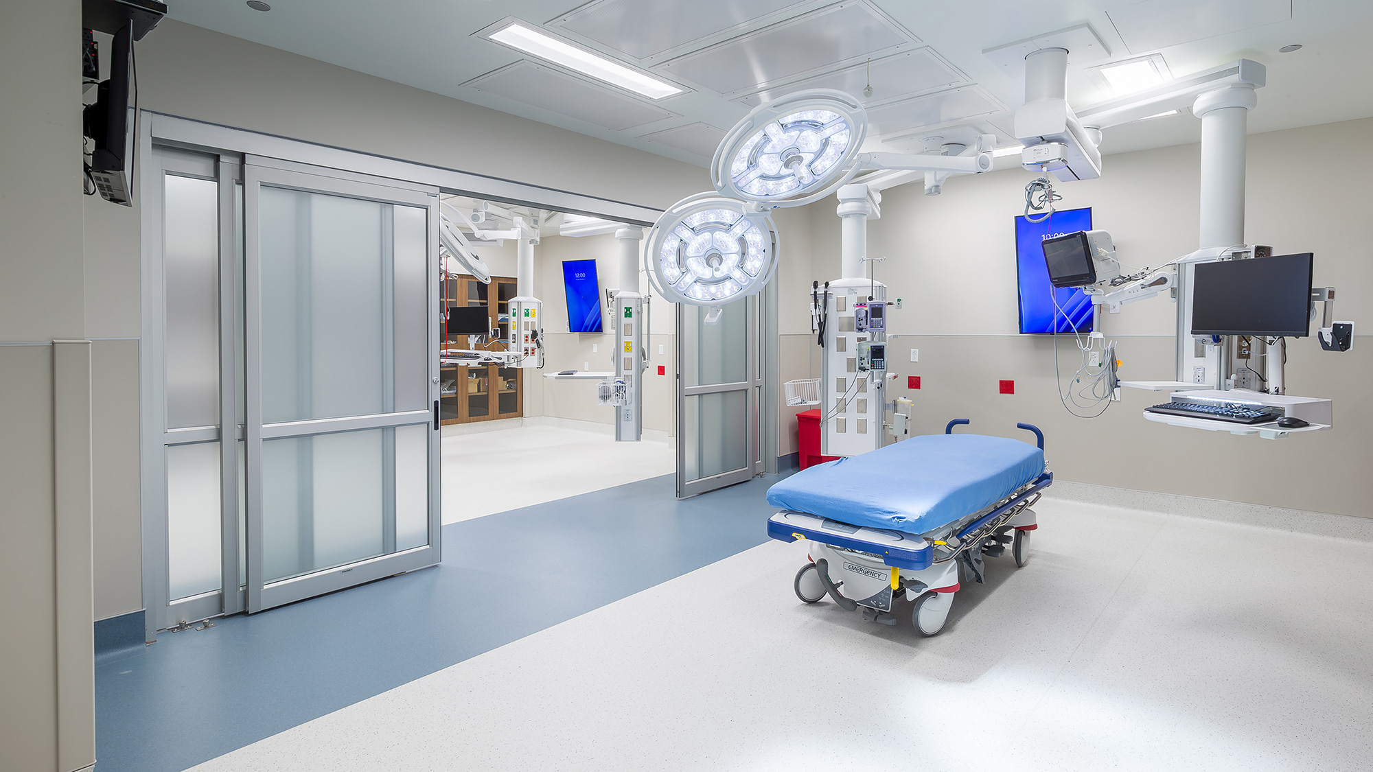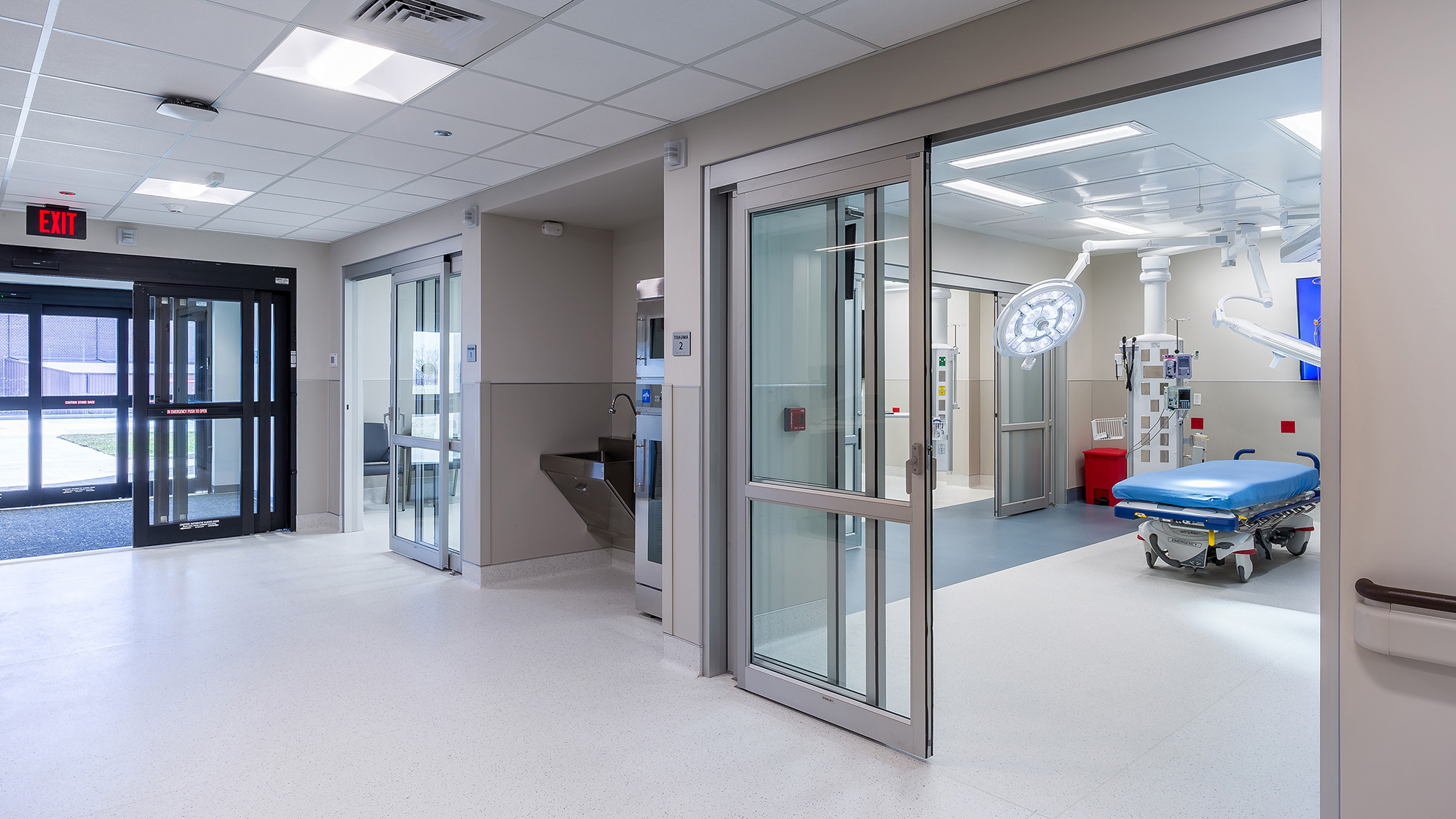 The addition and remodel called for our electrical, mechanical, and structural teams to work together for a unified facility. The electrical design included an upgraded utility service and emergency power system to provide increased capacity. Almost all the existing electrical distribution, lighting, and technology systems were either replaced or upgraded. The mechanical system was designed to produce domestic hot water using new heat exchangers. This reduced the overall consumption and operating cost. The system also utilized desiccant dehumidifiers that provide low temperatures in the operating rooms for staff comfort during surgeries. In case of future pandemics, the mechanical design allows a portion of the patient wing to become a negatively pressurized isolation area. The new addition is an independent steel structure that wraps around the corner of the existing structure. Since the addition is taller than the adjacent existing eave, the roof was overbuilt for effective roof drainage. New operating rooms in the existing building required analysis and reinforcement of the existing roof structure to support the essential operating room equipment.