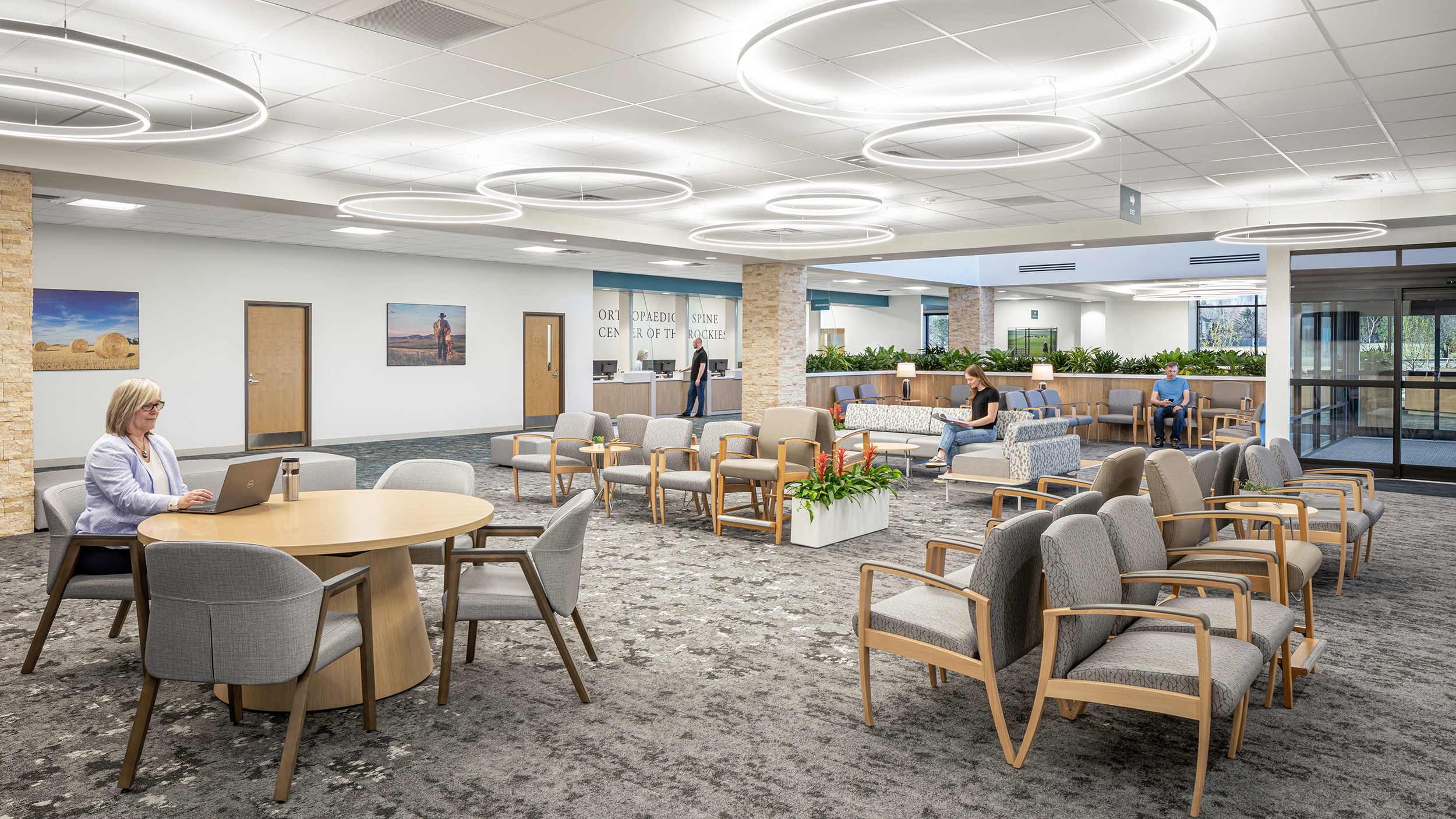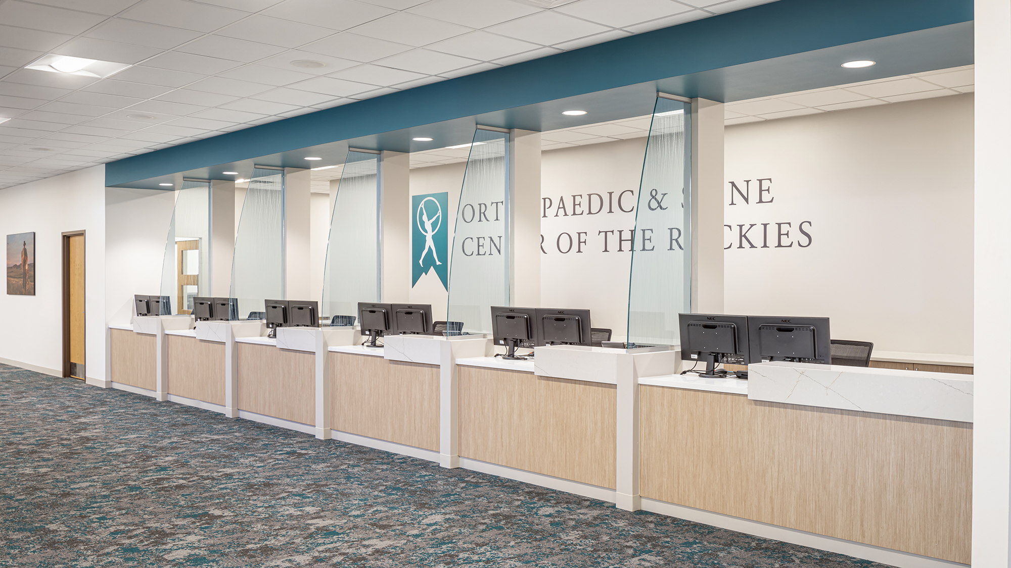 Host to a large client base and many board-certified specialists, the Orthopaedic & Spine Center of the Rockies (OCR) recently opened a new facility in Greeley, CO to meet the growing demand. Since 1960, OCR has provided specialized orthopaedic care for patients in Colorado, Wyoming, and Nebraska. OCR has several locations with similar aesthetics, so design consistency was paramount for this project.