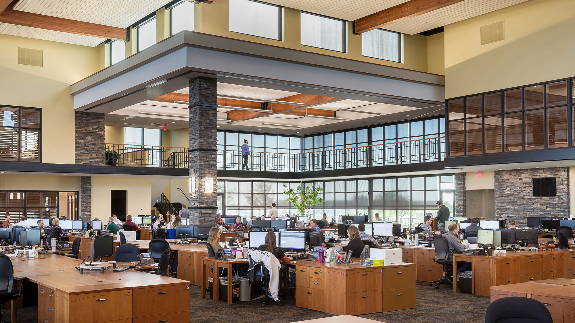 Due to the open floor plan and unique architecture of the building, the most challenging part of the electrical design was finding a way to discreetly get data cabling and pathways laid out within the building, specifically within the open office area. To accomplish this, the design included hundreds of conduits that ran below the floor into the IT and electrical rooms.
