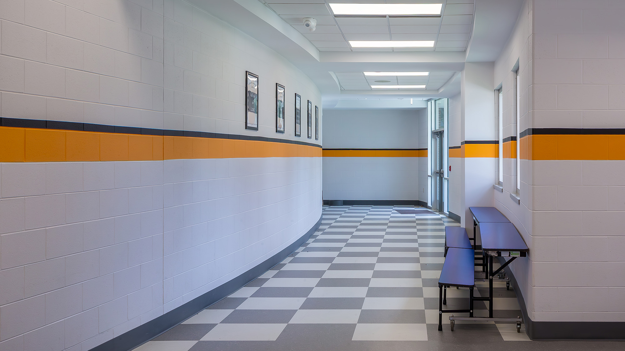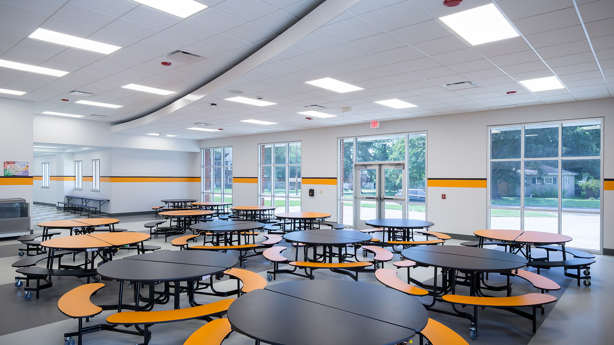 Beginning at the elementary school, a 7,500 SF addition was planned. This addition included a new cafeteria, two classrooms, new restrooms, and a corridor leading from the addition to the existing storm shelter. The current 33,580 SF building was renovated to bring the restrooms up to ADA compliance, update the kitchen space, and rework all the current corridors.