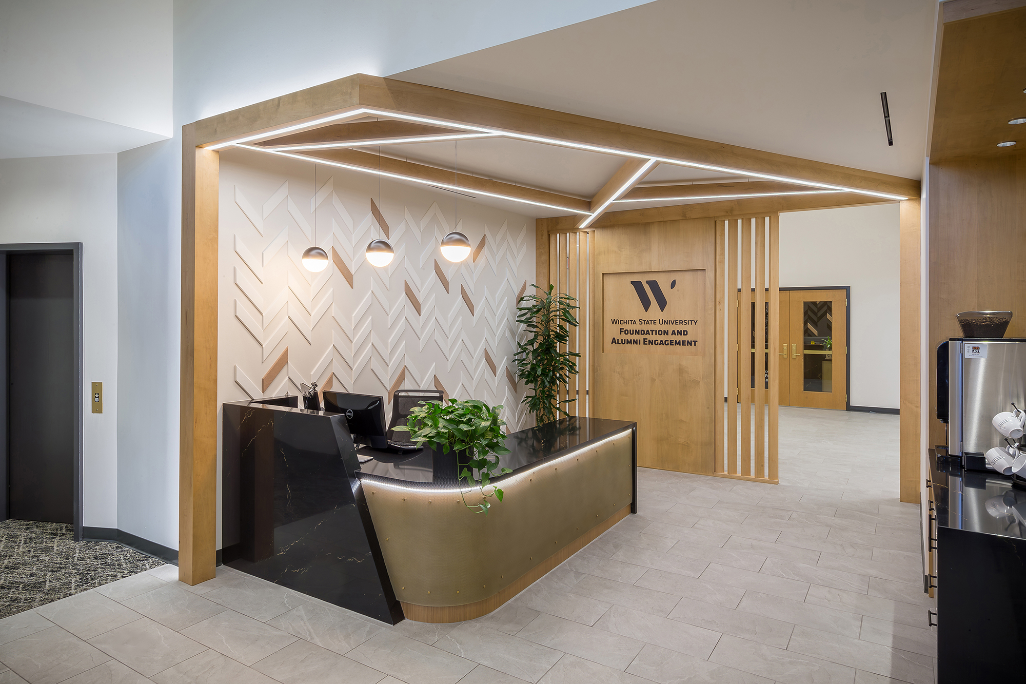 The Woodman Center at Wichita State University (WSU) is home to WSU Foundation and Alumni Engagement (WSUFAE). With a growing university, an updated space was needed for these groups to continue their work of moving WSU forward.