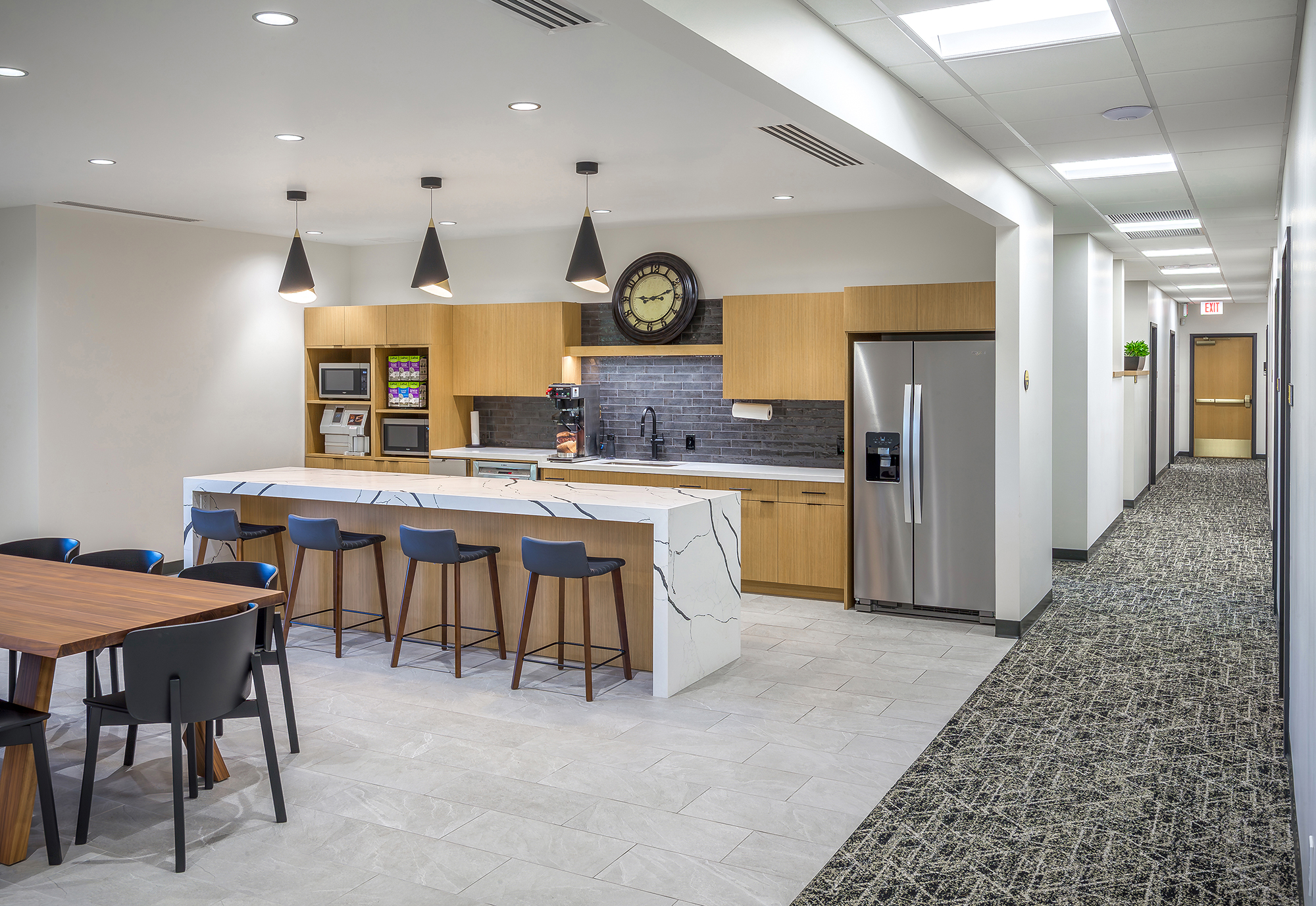 The main floor of the existing facility was renovated to update the aging space. The intent of the renovation was to create a more modern, inviting, and hospitable space for both occupants and visitors. PEC designed systems to support additional private/open office spaces, a break room, and collaboration areas. Notably, a new fire sprinkler system was installed which improves safety in the building.