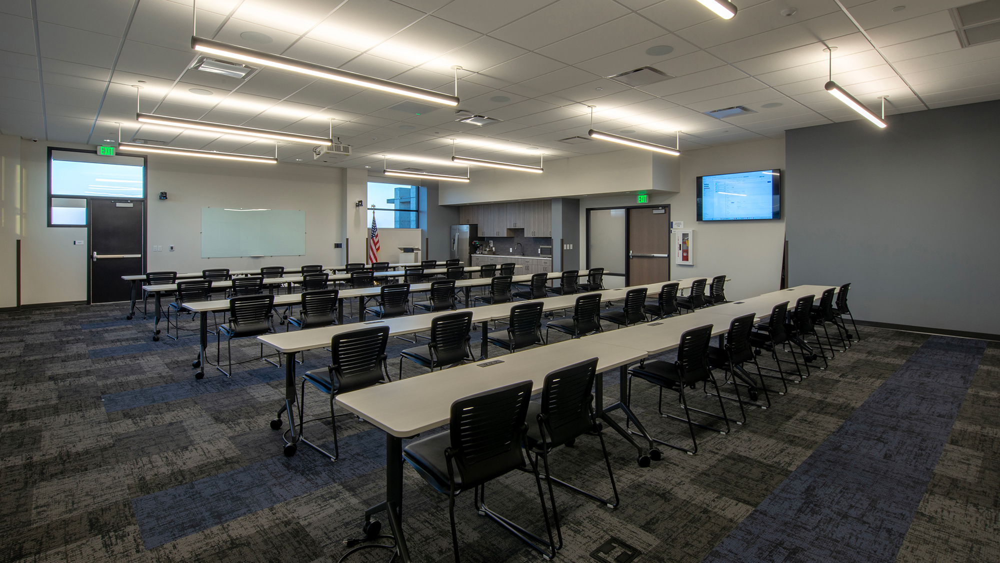 Throughout the project, supply chain and lead time issues were a challenge. By working closely with the contractor, PEC was able to tailor the design to make sure it could meet the timeline. PEC analyzed multiple mechanical system options and considered ongoing energy costs, upfront costs, and serviceability to provide the best long-term solution. For the electrical systems, PEC designed redundant and parallel generators to make sure the power always stayed running. The one-story steel structure is comprised of steel joists and steel wide flange beams supported by steel columns and masonry bearing walls which were also supported on shallow concrete foundations. The PEC technology team worked closely with police department staff to make sure they have a safe and secure building along with giving them helpful A/V tools for their daily needs.