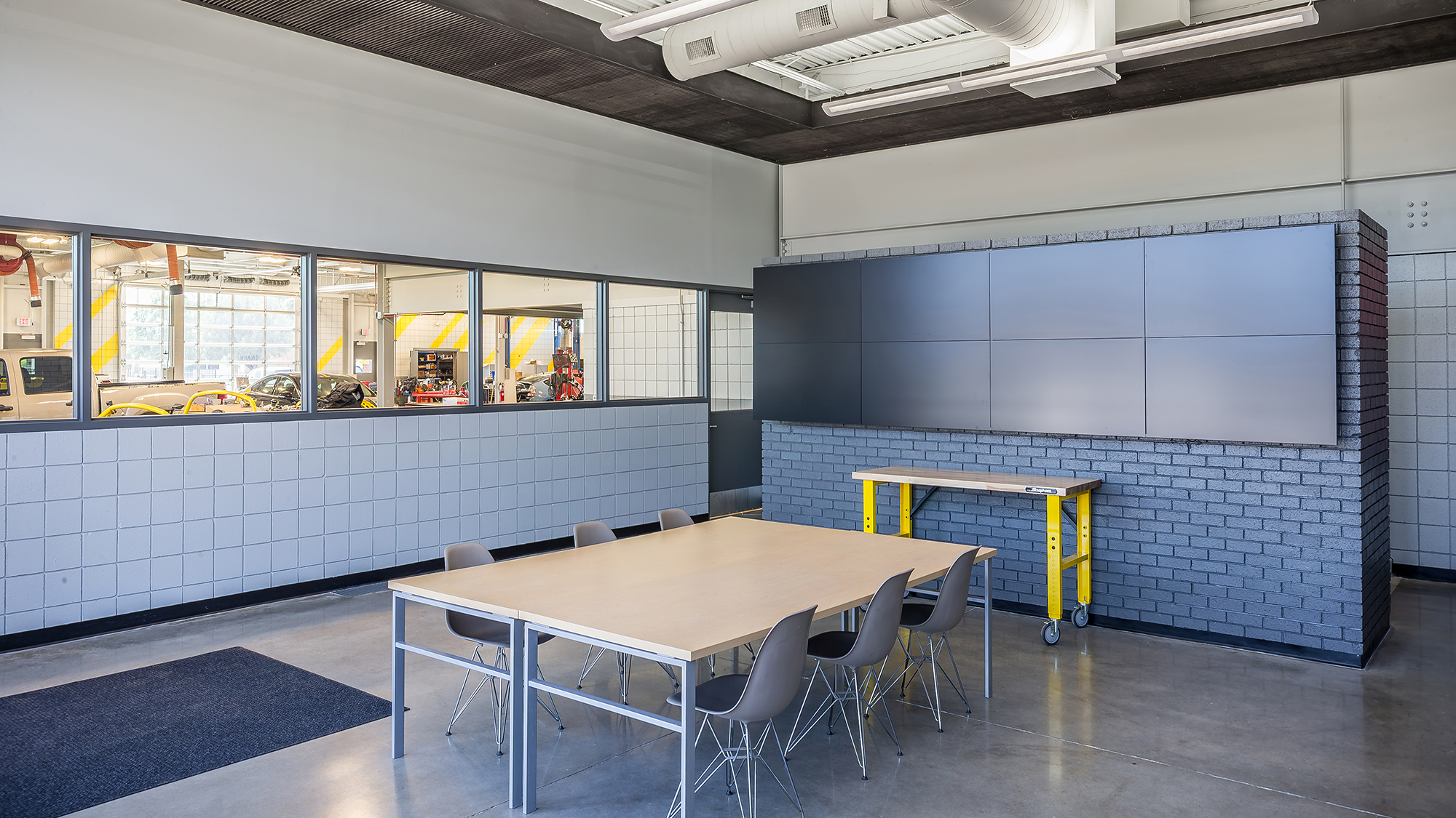 As a part of the project, PEC provided engineering design services for the renovation of the existing ‘C’ Building located on the former Wichita Area Technical College (WATC) Campus at East High School. This included updating the existing garage space, paint booth area, and classroom space. Expanded classroom areas provide space for students to learn about trucks, semis, and alternative fuel vehicles, and additional space was allotted for a dedicated equipment maintenance area. With sustainability now at the forefront of this industry, WSU Tech students will be well-versed in the function and maintenance of electric vehicles, compressed natural gas, hybrids, and more. PEC designed new lighting and HVAC for air tempering of the renovated spaces. Additionally larger restroom facilities were designed for faculty and students. Structural design provided infill for removed overhead door openings and the addition of exterior glazing to improve natural lighting.