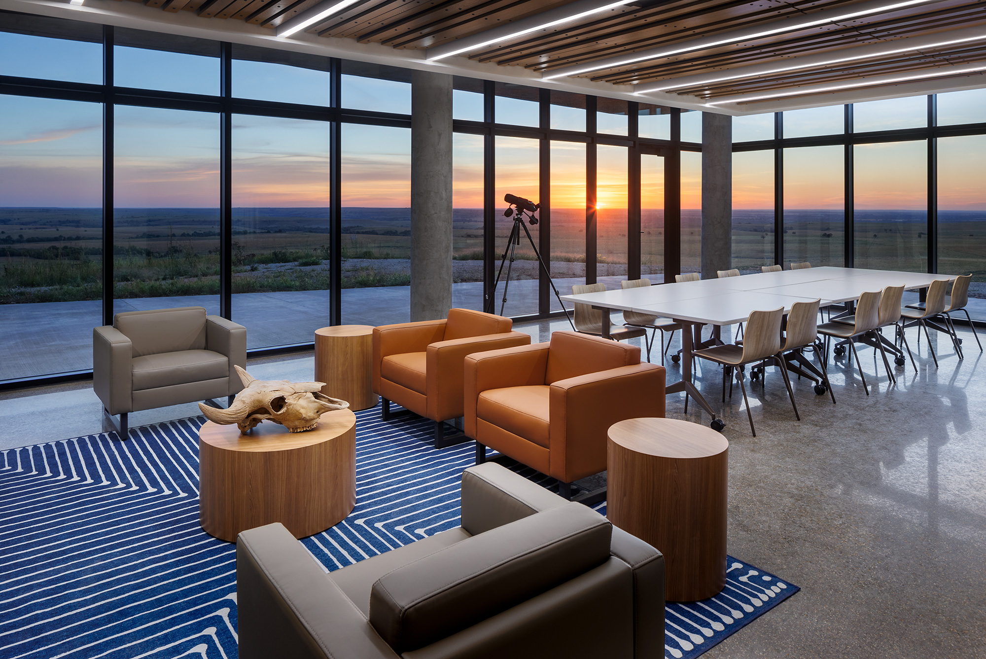 Nestled in the rolling landscape of the Flint Hills, the Youngmeyer Field Station provides a haven for Wichita State University bioscience students and faculty. The new 3,400 SF facility promotes continual research of the area’s wildlife and terrain. With a retreat center feel, the field station boasts a meeting space, lab, and office as well as living quarters with a kitchen and three bunk rooms. With fully functioning facilities, students and faculty can stay near their research, giving way for more intentional use of their time.